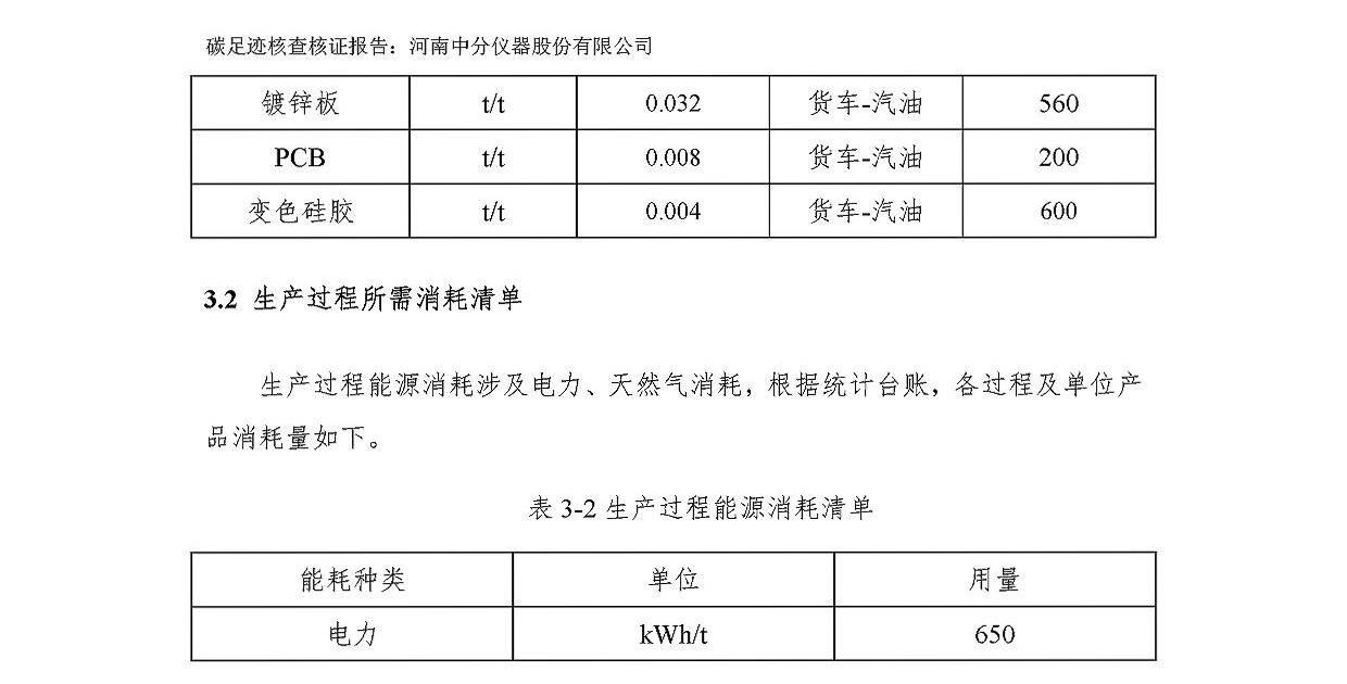 河南中分儀器股份有限公司2023年產品碳足跡核查報告