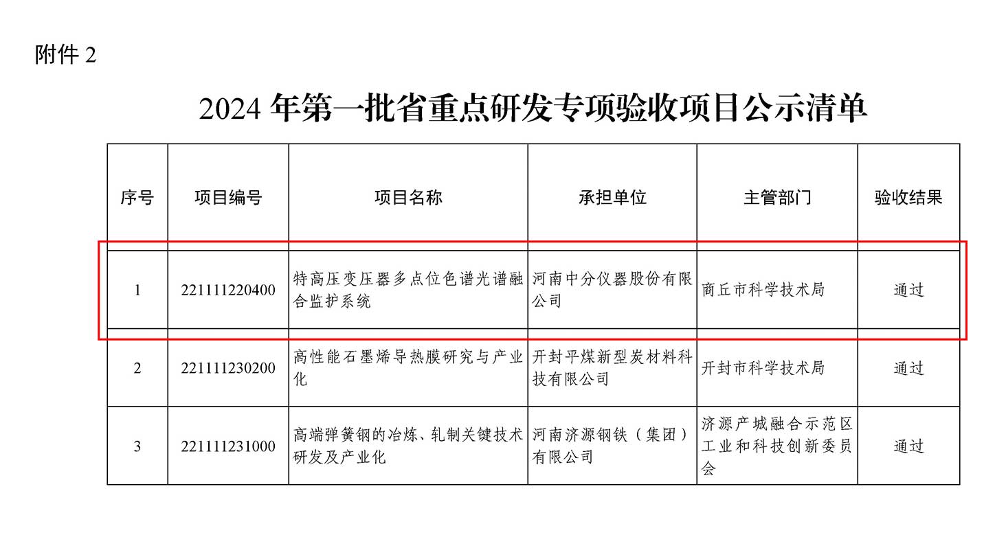近期,我公司“特高壓變壓器多點位色譜光譜融合監護系統”在2024年第一批河南省重點研發專項驗收中成功通過。該系統應用了先進的色譜光譜融合技術,可對特高壓變壓器進行多角度、全方位的監護。為特高壓電網的穩定運行提供了有力的支持。此次驗收結果肯定了我們項目的技術質量和科研團隊的工作。我們將繼續優化和完善項目成果,推動其產業化和市場化進程,為客戶和社會創造更多的價值。